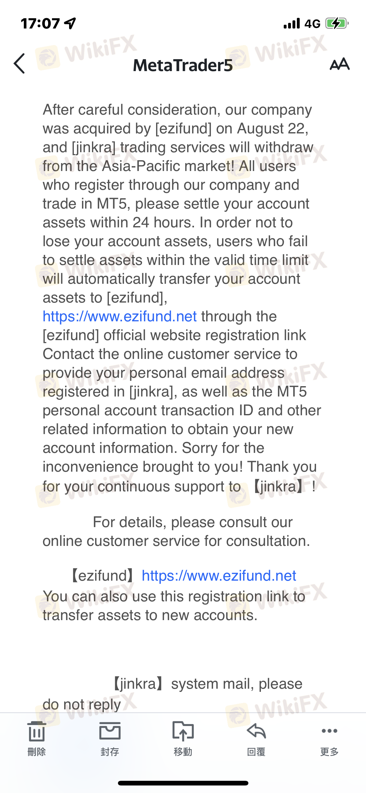 Isang netizen na nakilala ko sa IG ang biglang nagsimulang magbanggit ng MetaTrader5 isang araw, at kalaunan ay natanggap na ang negosyo sa Asia ay isasara. Simulan ang pag-download ng Ezifund. Ito ay may 5-10% na tubo sa isang araw. Sinubukan ako ng kabilang partido na magbukas ng kontrata at pagkilos, ngunit tumanggi ako. Natural na papatayin. Tapos dahil sa away ng kaibigan. Kaya, subukang mag-withdraw ng pera. Nangangahulugan ito na dahil sa paglabag, kinakailangan ang 200% ng unfreezing fee. Ito ay talagang isang mahirap na karanasan