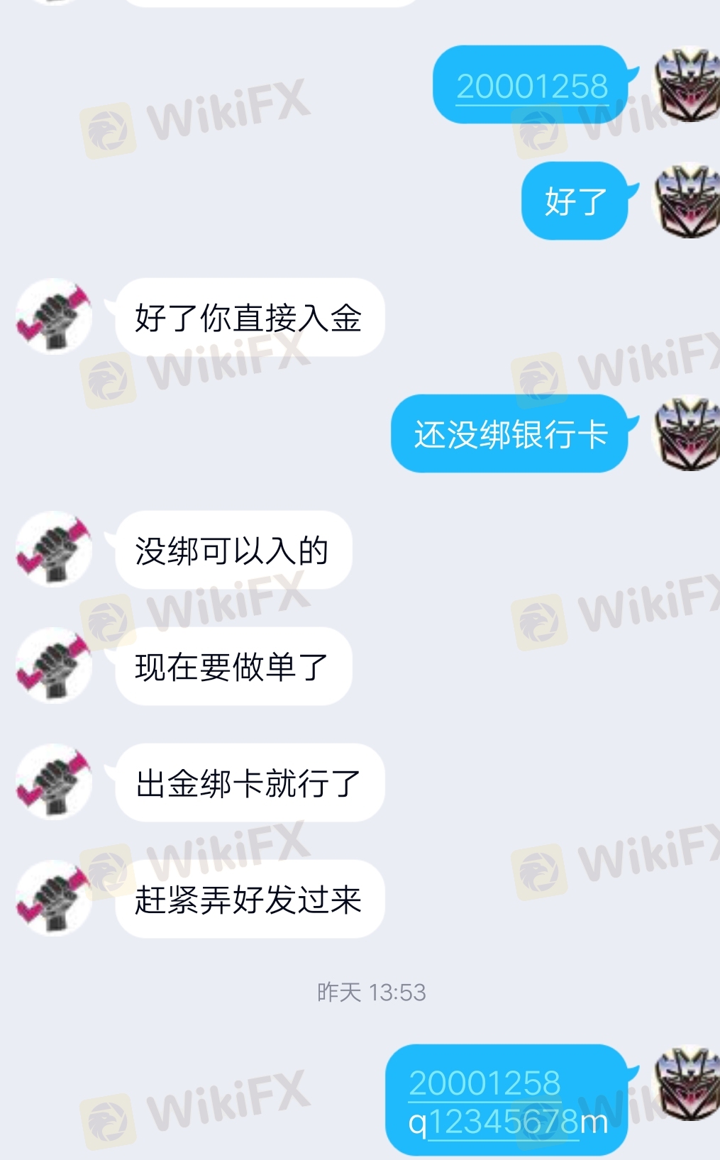 入金當代理要去賬號和密碼給刷了1500美元手續費,說手續費給返還,然后每手給23美元返傭,刷完單然后開始失聯,曝光后又聯系我,現在一個月了一直口頭說給處理