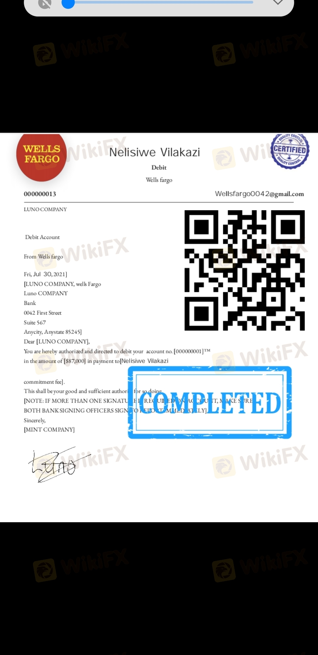 我被這家自稱是LUNO的公司騙了。交易商稱自己為Barry Seibert。我已經投入了R50000 SA的資金。他們說我在獲得批準后應該支付R17000的稅款,直到今天我還沒有從他們那里收到一分錢。我最近在Whatsapp上拉黑了他們所謂的交易商。我需要你的幫助和介入才能拿回我投資的錢。我通過Luno的地址匯款,我的Luno賬戶也被封鎖了。由于我拉黑了交易商,他們又給我發了一封電子郵件,說我應該與他們再次溝通。請參閱我從公司收到的信件的附件。