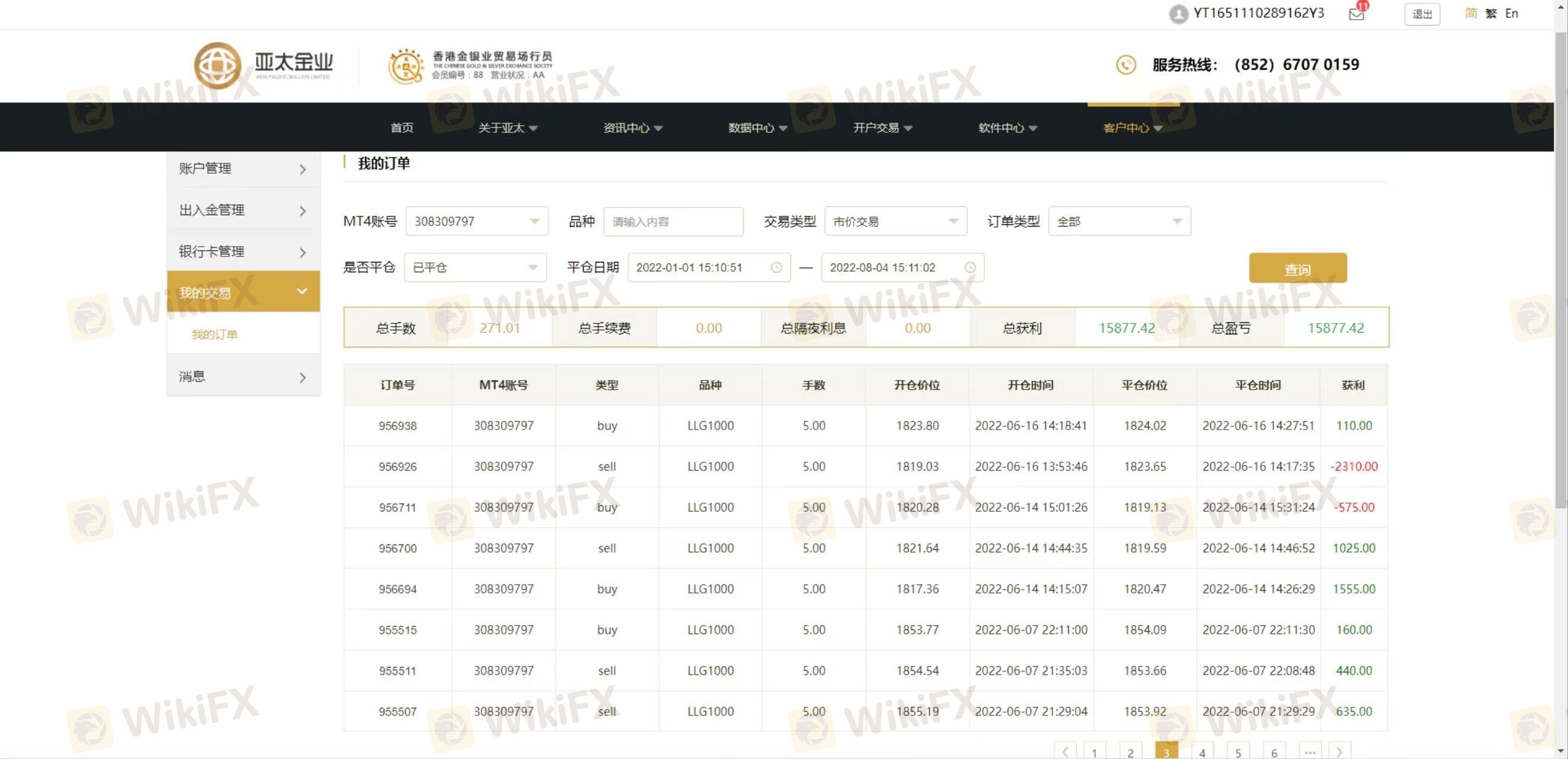 本人在亞太金業的賬號是308309797,于2022年5月9日和10日兩天總共入金94.96+9402.18美金,交易期間有贏有虧,經過一番交易之后小有盈利,本人最終于2022年7月12日提交11374.5美金全部出金,在提交出金之后,MT4里面的錢就被直接扣掉了,出金后臺狀態一直是審核中,期間也有找過無數遍客服,但是客服的回復都是千篇一律,讓我耐心等待,發郵件過去也是毫無回復,于是一直耐心等到今天,已經過去兩個多月了,資金都沒有到賬,只能開始申請維權,這家是黑平臺嗎?
