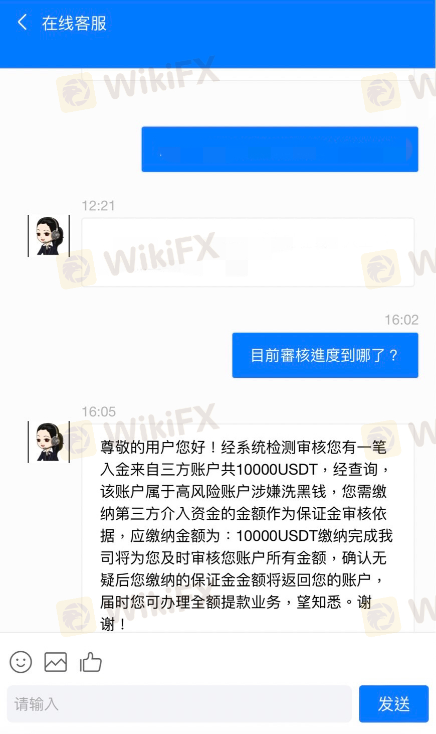 IG上認識一位香港人,一開始單純聊天,兩三個月之後,他開始教我投資黃金,先是下載幣安、MT5,並註冊交易平臺Pandora Finance Co.,起初只有投入5萬新臺幣等值的USDT,並且有順利出金一次,而他也在我的賬戶投入10000 USDT,並不斷遊說我投入更多資金,以獲得更多的收益,直到一次找客服人員想提領,卻收到這樣的回覆,我根本沒有更多的資金可以投入,結果幾天後,我的MT5帳戶就被刪除了,連平臺的網址也不見了,顯然是詐騙!!!